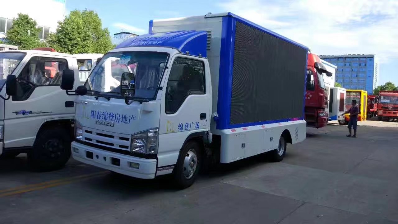 此次客戶訂購(gòu)的這輛五十鈴廣告宣傳車(chē)為五十鈴100P系列底盤(pán)改裝,三面P6彩屏,主要用于客戶公司房產(chǎn)項(xiàng)目的廣告宣傳工作。