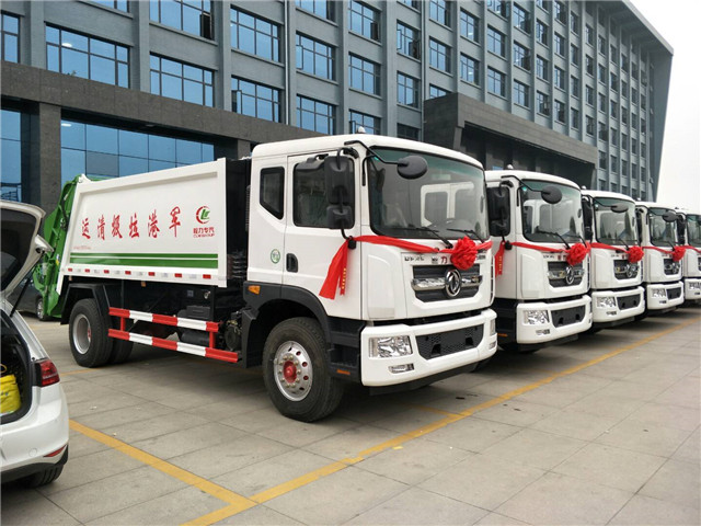 此次軍港采購的這些壓縮式垃圾車采用東風多利卡D9系列駕駛室底盤改裝,垃圾箱容積12立方米,康明斯180馬力發動機,后帶斗翻轉機構,帶PLC一鍵控制,操作方便。