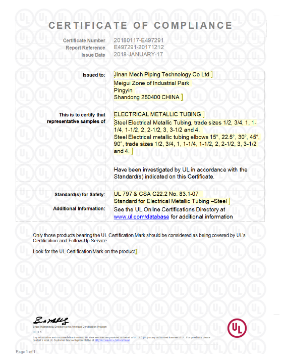 Meide Group UL-Certified Color EMT Conduit with Additional Red Coating on the Exterior Surface