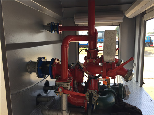 泵房中置或者后置泵,泵房左右兩側、器材箱左右側均有新款易拉高強度鋁合金卷簾門。