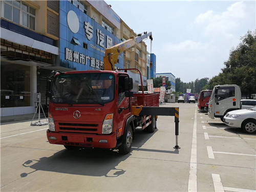 直臂式隨車吊車廂中貨物不能超過吊臂高度。