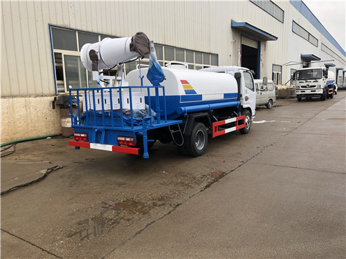 上裝配置:罐體容積:4.5立方(裝水4.5噸),罐體鋼板采用Q235碳鋼鋼材,前沖后灑、側噴、平臺高炮、自流閥及消防接頭各1個、水管2根、標配億豐泵或金龍泵,霧炮機可選裝20-35米,