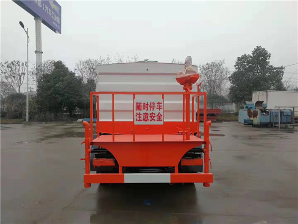 灑水車后部安裝有工作平臺,帶安全護欄,平臺上安裝綠化灑水炮,灑水炮可360°全方位旋轉,可上下120°調節噴頭的仰角。可連續調成直沖狀、大雨、小雨、毛毛雨,灑水炮射程大于35米,緊急時可用于消防。