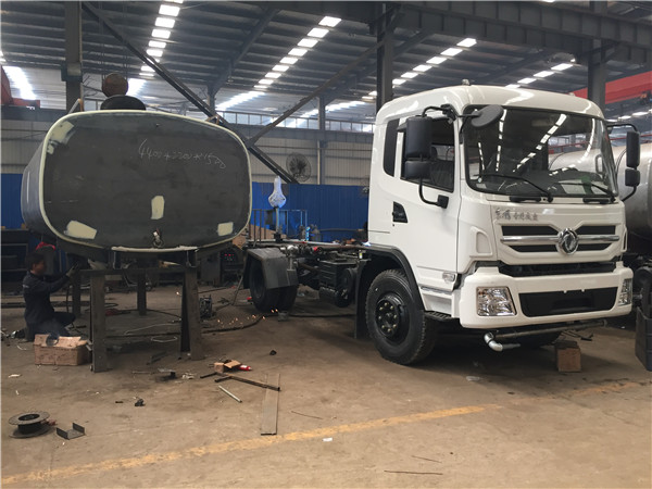 灑水車中涂完成后就可以將罐體固定到底盤上。一般情況下罐體可以直接安裝到底盤上,但是也有特殊情況。如果底盤較低,灑水車改裝廠就需要在底盤上加木方再進行安裝。使用木方比鋼材更能減輕自重,而且節省成本。使用的木方主要是松木,防腐效果好。