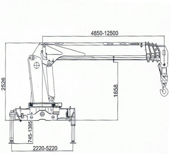 徐工16噸五節直臂吊機,吊機安裝位置中置式,吊機成全回轉,最大起吊重量16噸,最大工作半18.5米7.5噸;工作半徑7.8米舉升高度9米,起吊重量2.3噸;工作半15.8米舉升高度11米,起吊重量3.1噸;工作半徑13.2米舉升高度14米,起吊重量1.8噸;工作半徑15.8米舉升高度16.3米,起吊重量1.6噸;工作半徑18.5米舉升高度19米,起吊重量1.2噸。