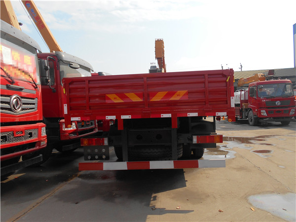 東風(fēng)特商后八輪大隨車吊上裝配置:上裝可以選擇標(biāo)準(zhǔn)型或者重載型;標(biāo)準(zhǔn)型上裝橫梁采用12*12規(guī)格6mm厚方鋼,整根貫穿式設(shè)計(jì),保證承載性能,貨箱平板8mm厚花紋板;重載型上裝橫梁采用14*14規(guī)格8mm厚方鋼,整根貫穿式設(shè)計(jì),承載性能更好,貨箱平板10mm厚花紋板。爬梯采用加強(qiáng)型設(shè)計(jì),采用三道筋雙簧加固處理,帶后支腿,隨車吊帶有斜支撐,平板可以伸縮,伸出3米,縮回2.5米,貨箱平板長(zhǎng)度7.5米,是運(yùn)輸20-30噸大型挖掘機(jī)、大型工程機(jī)械等最理想。