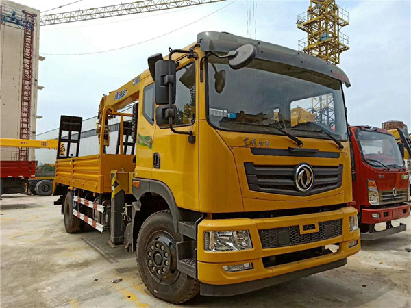 東風隨車吊可采用東風后雙橋底盤,齊心新款駕駛室佩帶氣囊座椅,電動升降玻璃,電動液壓升降駕駛室,方向助力,斷氣剎,abs防抱死,玉柴240馬力和玉柴270馬力國五發動機,10.00R20鋼絲胎,5噸前橋東風德納10噸雙后橋,懸掛也采用重載設計,保證承載性能。法士特小8檔變速箱,外形尺寸10450,9980×2500×3200(mm),總質量25噸上戶噸位13噸車身自重10.9噸,。標準型上裝橫梁采用12*12規格6mm厚方鋼,整根貫穿式設計,保證承載性能,貨箱平板8mm厚花紋板;重載型上裝橫梁采用12*10規格8mm厚方鋼,整根貫穿式設計,承載性能更好,貨箱平板8mm厚花紋板,爬梯采用重載加強型設計,采用三道筋雙簧加固處理,帶有后支腿,平板帶有斜支撐,貨箱平板可以伸縮,伸出3米,縮回2.5米,貨箱平板長度8米,是運輸20噸-30噸大型貨物、大型工程機械等最理想的隨車吊。