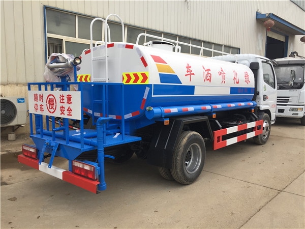 東風多利卡5方灑水車,朝柴73KW柴油發動機(95馬力),7.00-16尼龍胎,灑水車駕駛室顏色白色,自吸自排灑水泵,前沖,后灑,側噴,高位花灑,后平臺灑水炮,水罐容積5立方,2根罐體等長抽水管,一個消防接口,一自流口。