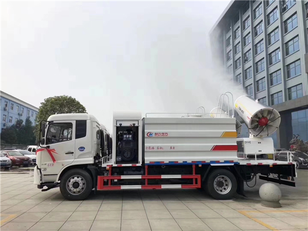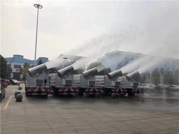 一種就是城市里面使用的抑塵車,抑塵車又稱為:霧炮車、噴藥車。霧炮車噴射的水霧顆粒達到微米級,能有效分解空氣中的污染顆粒物、塵埃等,在霧霾天氣下用于降塵除霧,可以有效的緩解霧霾,其節水的特性同樣也可以用作灑水車使用。霧炮車還可以降塵、灑水,把樹上的灰塵洗掉。霧炮車噴灑出的水霧與懸浮在空氣中的PM2.5和PM10粉塵顆粒吸附、聚合、沉降,達到消除污染物和減霾的目的。盡管霧炮口徑巨大,但其噴灑耗水量僅為傳統灑水車的兩到三成,覆蓋面積和除塵效率卻高出20倍。既提高效率,也避免路面積水影響交通。