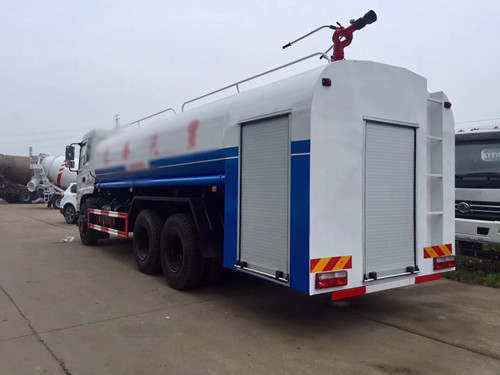 保定用戶購置15噸東風T5保溫運水車帶灑水車發車,該車夏季用戶綠化噴灑使用,而且駕駛室前置電動灑水炮,冬季用來運輸熱水,一車多功能。