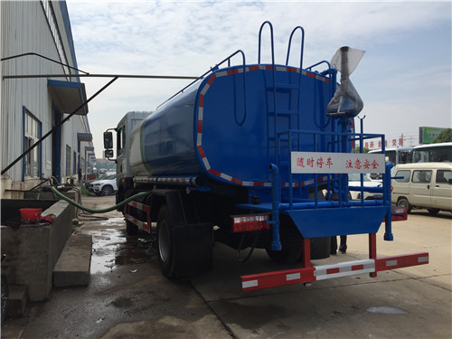 4、東風福瑞卡5噸灑水車的維護與安全:灑水車底盤和發動機部分的使用和保養,按載重灑水車使用說明書執行。水泵的使用和保養,嚴格按其使用維護說明書執行。水源不能有過多雜質,過濾器網應該經常拆洗。冬季來臨前,灑水車應將水泵和水管內的水放空,以防凍裂。灑水車吸水時進水管系統必須保持一定的真空度,才能將水吸入箱內,故進水管系統務必密封可靠.每次工作完畢后,均應將各閥門手柄扳至關閉狀態。各閥門一般不應處于半開狀態,以免影響密封性能。每次工作完畢后,均應及時蓋上進、出口外端的堵蓋。水裝載量不宜超過額定裝載質量。