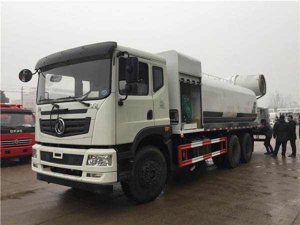 保定用戶購置15噸東風T5抑塵車發(fā)車,該車夏季用戶綠化噴灑使用,而且駕駛室前置電動灑水炮,冬季用來運輸熱水,一車多功能。