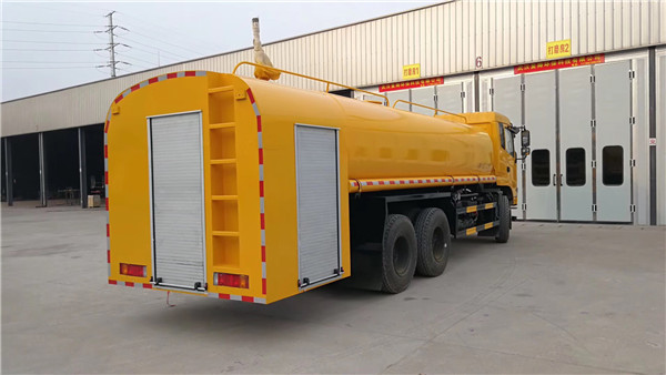 4、東風6*6驅動軍用灑水車,不但具備灑水車的各項功能(如灑水、運水、綠化、保溫、抑塵等),并可用于運送飲用水或緊急消防等用途,是軍用的理想用車,整車外型經典,動力強勁,功能齊全,十分適合于野外、沙漠等地況極為惡劣的地區使用。