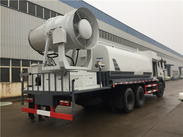 重汽斯太爾100米多功能抑塵車上裝配置:罐體為方形罐,罐體內部做防腐,主管路鍍鋅,工作平臺,采用億豐60/90大流量水泵,消防接口可自流,音樂喇叭,100米噴霧機組。