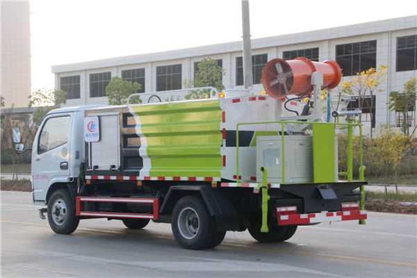 多功能抑塵車罐體:采用武鋼生產的Q235優質碳鋼板制作,罐體有效容積5立方,可選圓形罐體或方形罐體,帶前沖后灑、側噴功能,尾部帶工作平臺,平臺上安裝綠化高炮,垂直吸程6.5米,揚塵14米,帶消防接口、自流閥,可自吸自排。噴霧機組:尾部裝高效率噴霧式車載風機,霧炮射程可達30-80米,柴油發電機組,電子搖控操作,可上下左右自動搖動噴霧,實現360度旋轉。