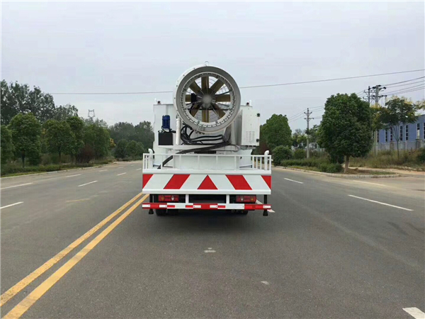 3、抑塵車風機的作用是產生高速氣流。當風機葉輪旋轉時,高速氣流從出風口噴出,將噴頭霧化形成的細小霧滴流吹送到需要區域。同時在氣流的作用下,植物枝葉產生擾動,有利于霧滴進入作物內部,提高了防治效果。除塵霧炮機采用驅動方便、風壓高、風速大、氣流穿透力強的離心風機,這樣除了可以保證噴霧射程外,還可以給使霧化效果提高。葉片采用全壓效率較高的后向彎曲葉片。