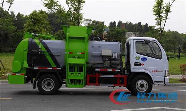 餐廚垃圾車種類及簡易介紹:1、自卸式餐廚垃圾車――又稱為:垃圾收集車,可用于沿街定時收集生活餐廚垃圾; 2、擺臂式餐廚垃圾車――分為地面式和地坑式二種,擺臂餐廚垃圾斗有方形和船式二種; 3、密封式餐廚垃圾車――密封蓋式、前滑蓋式、液壓翻蓋式餐廚垃圾車; 4、掛桶式餐廚垃圾車――又稱:自裝卸式餐廚垃圾車,可配合國標鐵制或塑料餐廚垃圾桶使用; 5、拉臂式餐廚垃圾車――又稱:勾臂式餐廚垃圾車、車廂可卸式餐廚垃圾車,目前較為暢銷的餐廚垃圾車型; 6、壓縮式餐廚垃圾車――分為側裝式、后裝式二種,餐廚垃圾壓縮能力強,效率較高。 7、對接式餐廚垃圾車――又稱:餐廚垃圾塊運輸車,一般與壓縮餐廚垃圾站配合使用。 8、餐廚垃圾車――又稱:泔水車,主要用于廚余垃圾收集與運輸。 ⑨ 方便的操作控制 作業控制盒分別安裝在駕駛室內和車尾,駕駛室內的作業控制盒可控制推擠卸料和選擇操作模式(如自動或手動),車尾的作業控制盒則控制壓填機構和翻桶機構的作業,使用操作十分方便。特別是在垃圾填埋場,作業人員無須下車即可完成卸料和污水排放。⑩ 高質量的元件 電氣、液壓系統的關鍵元器件均采用進口知名元件,如PLC、壓力傳感器、按鈕、油缸密封件等,提高了餐廚垃圾車的使用可靠性。