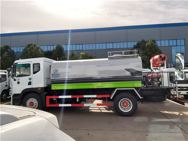 東風御虎12噸灑水車采用自動流水線罐體生產工藝分為:下料、拼板自動焊、封頭旋壓成型、罐體一次滾壓成型等國內先進生產工藝。罐體材料多采用優質碳鋼板生產。特殊用途的情況下也可以根據客戶的需要采用304不銹鋼。