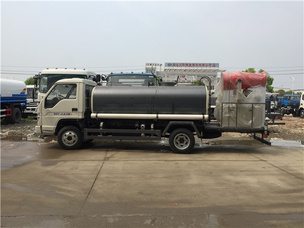淮北福田時(shí)代小型灑水車專用部分:具有前沖后灑、側(cè)噴(更換噴頭后變?yōu)閭?cè)花灑)、后置式工作平臺(tái)(帶踏梯,四周有安全護(hù)欄)、平臺(tái)上設(shè)置有高壓水炮(可360°旋轉(zhuǎn),可調(diào)成柱狀最大射程28米,也可調(diào)成霧狀最大射程14米,可調(diào)成:直沖狀、大雨、中雨、小雨、毛毛雨),整車灑水寬度大于14米.配備優(yōu)質(zhì)大功率專用灑水泵,取力器,雜物過(guò)濾網(wǎng),國(guó)標(biāo)通用65型消防接口(可通過(guò)消防栓加水)、1套自流球閥系統(tǒng)(可自吸自排,最大吸程6米),2根引水鋼絲膠管(帶陰陽(yáng)快速接頭),配鎖,水位計(jì),作業(yè)高音喇叭.兩側(cè)及后加強(qiáng)型保險(xiǎn)杠,防滑爬梯,膠管儲(chǔ)存筒。