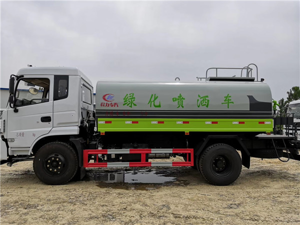帶自流閥,消防接口。帶自吸泵,可將池塘的水直接吸入罐體內也可直接從城市街道消防栓上連接注水,吸入罐體內。罐前量管(觀察罐內水位)、罐后爬梯、罐上罐口帶簡易護欄、罐側雙炮筒、6米長4寸鋼絲塑膠管兩根,宣城東風12噸灑水車罐體表面雙層油漆工藝,防銹、耐腐蝕,其余有廠家標配。可選擇加裝加裝藥盤、氣動控制閥、噴藥設備、罐內防腐等。宣城東風12噸灑水車也可做噴藥車使用,可根椐用戶要求進專業噴藥防腐處理,也可做企業單位運水用,緊急時可做消防車使用。