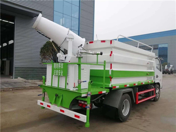 霧炮車前噴頭位置較低,靠近地面,噴灑壓力較大,可用于沖洗路面;后噴頭位置較高(灑水車后噴頭一般左右各安裝一個(gè)),霧炮面較寬,可用于公路施工霧炮,使用后噴頭時(shí),應(yīng)將前噴管關(guān)閉;使用可調(diào)噴頭霧炮時(shí),霧炮寬度可根據(jù)需要調(diào)整。霧炮寬度越寬,中間重疊量越少,霧炮密度越均勻。