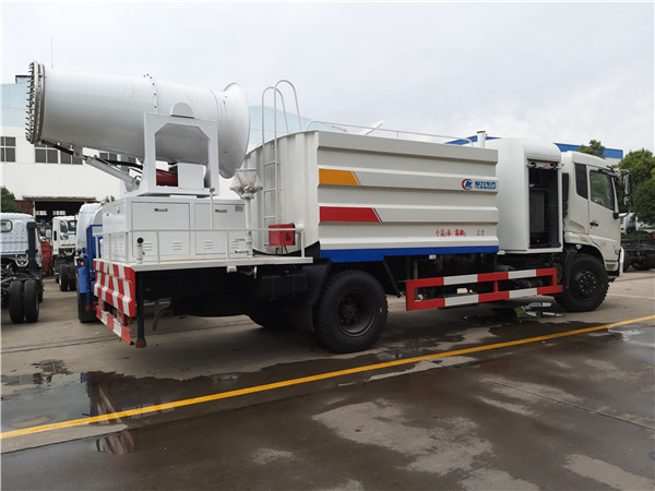 東風(fēng)天錦12噸霧炮車基本配置:隨車配備大功率專用霧炮泵(標(biāo)配隨州億豐霧炮車,選配杭州威龍霧炮泵),比同類霧炮泵壓力大、吸程遠(yuǎn)、使用壽命長,克服其他霧炮泵易被雜物纏住、壓力小、吸水慢的缺點(diǎn)。整車帶前沖(噴)、后灑、側(cè)噴、罐體后部帶工作臺(tái),平臺(tái)上安裝綠化高壓霧炮炮。霧炮炮可全方位旋轉(zhuǎn),可連續(xù)調(diào)成直沖狀、開花狀、大雨、小雨、毛毛雨、半霧狀水流,以適合不同狀況下的需求。