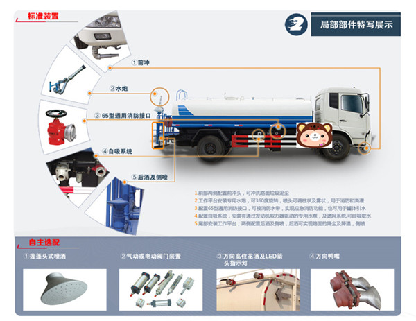 東風灑水車是在QL11009LARY原裝國六排放底盤上,加裝防銹罐體、連通器、專用自吸式灑水泵、管網、噴灑出口、后工作平臺、操作系統等組裝而成,具有綠化、環衛運水、排水,應急消防等多功能,適合于各種路面沖洗,樹木、綠化帶、草坪綠化,道路、廠礦企業施工建設,高空建筑沖洗。具有灑水、壓塵、高、低位噴灑,農藥噴灑、護欄沖洗等。