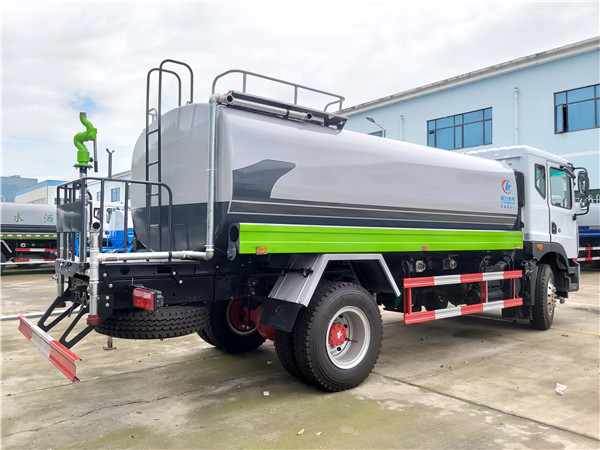 灑水車(chē)貯水箱設(shè)有排污管,該管的進(jìn)口為水箱的最低點(diǎn)。經(jīng)過(guò)一段時(shí)間的使用,應(yīng)定期打開(kāi)排污管開(kāi)關(guān),將罐內(nèi)積存的雜物排除,直到水變清為止。