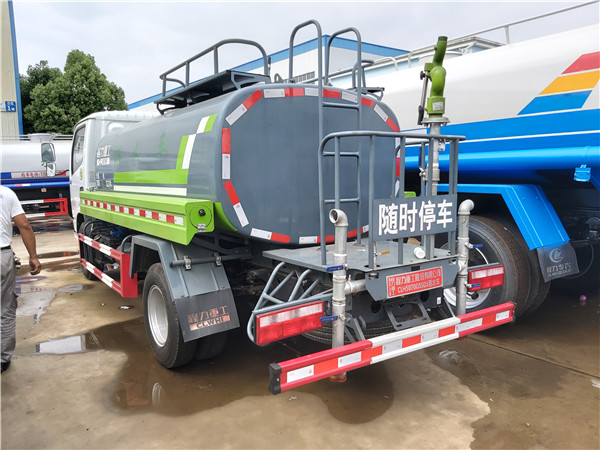 東風(fēng)灑水車前裝有鴨形噴嘴或圓頭沖嘴,后面裝有圓柱開灑水噴嘴或蓮蓬頭噴嘴,后部有一工作平臺(tái),裝配有水炮。后部還可裝8個(gè)噴嘴(選裝)噴水器一般用于沖洗街道,起除塵和降溫作用,其噴水器可以用調(diào)節(jié)噴嘴螺紋的方法改變噴水器的噴灑方向和角度,高射水炮可以用于城鄉(xiāng)園林綠化及應(yīng)急消防。蓮蓬嘴可以澆落路中間噴水器沖起的灰塵,起到清潔空氣的作用。