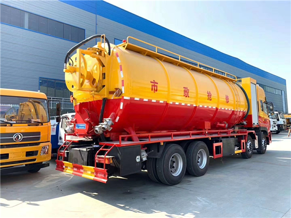 東風(fēng)天龍高壓清洗吸污兩用車∶該車在高度真空狀態(tài)下進(jìn)行吸泥、污水吸入作業(yè)。該車是由汽車底盤、取力器、傳動軸、真空吸污泵、壓力罐體、液壓部分、系統(tǒng)、真空壓力表、視糞窗、吸收裝置等組成。隨車合理搭配置國產(chǎn)、進(jìn)口優(yōu)質(zhì)的柱塞高壓泵,通過高壓水流產(chǎn)生的強(qiáng)大壓力沖開被堵塞的管道。主要組成部分為罐體、高壓泵、液壓系統(tǒng)等。高壓清洗吸污兩用車適用于大、中、小城鎮(zhèn)換位、市政、農(nóng)業(yè)、化工、廠礦企業(yè)、物業(yè)小區(qū)等部門的清洗疏通下水道和各種管道的沉積物,同時可進(jìn)行下水道中污泥清撈、裝運(yùn)、傾斜工作同時具有運(yùn)水、排水應(yīng)急消防等功能。