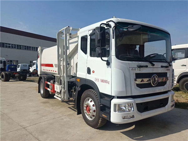 東風(fēng)多利卡D9后裝餐廚式垃圾車,搭配康明斯180馬力國五發(fā)動機,法斯特八檔箱,10.00R20鋼絲胎,軸距4500mm,原廠空調(diào),正規(guī)東風(fēng)GB7258-2017新規(guī)底盤;上裝采用Q345高強度錳鋼板制作,廂體容積:12.8立方米,可裝32立方散裝垃圾,大流量液壓泵,大流量手自一體多路換向閥,可編程PLC電控系統(tǒng)帶無線遙控器操作系統(tǒng),雙污水廂,雙向壓縮,卸料時帶一鍵循環(huán)系統(tǒng),司機不下車可完工卸料工作。尾部選裝翻擺臂斗機構(gòu),選裝遙控器操作。