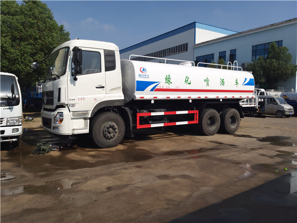 國六20噸天龍后雙橋灑水車是采用東風平頭天龍底盤,9檔變速箱,康明斯290馬力,1100鋼絲胎,目前都有現車,到廠提車2-3小時便可出廠。