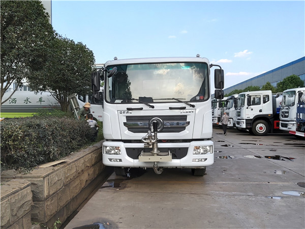 灑水車在灑水和澆灌花木時,其操作程序是;調節三通球閥位置(注意:三通球閥凹坑所對方向關閉),關閉鋁合金球閥和消防栓,打開不銹鋼球閥,打開鋁合金球閥,踏下離合,打開取力器開關,慢慢松開離合(千萬不可過快,否則將會損壞取力器或變速箱),使水泵開始工作,即可實現灑水和澆灌花木的功能,停止工作后開關回位。