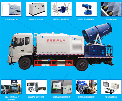 抑塵灑水車車又稱為:抑塵車、噴藥車。霧炮車噴射的水霧顆粒達到微米級,能有效分解空氣中的污染顆粒物、塵埃等,在霧霾天氣下用于降塵除霧,可以有效的緩解霧霾,其節水的特性同樣也可以用作灑水車使用。霧炮車還可以降塵、灑水,把樹上的灰塵洗掉。霧炮車噴灑出的水霧與懸浮在空氣中的PM2.5和PM10粉塵顆粒吸附、聚合、沉降,達到消除污染物和減霾的目的。盡管霧炮口徑巨大,但其噴灑耗水量僅為傳統灑水車的兩到三成,覆蓋面積和除塵效率卻高出20倍。既提高效率,也避免路面積水影響交通。
