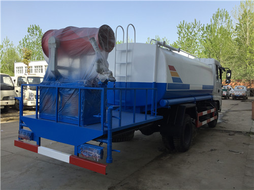 灑水車標準配置和選裝配置,有前沖、后灑、綠化澆灌、遠程水炮等裝置。采用輕質的鋁合金材料,并設置有多重安全防護裝置與報警系統。灑水車罐體采用4毫米Q235碳鋼一次鑄造成型,罐體容積12立方。