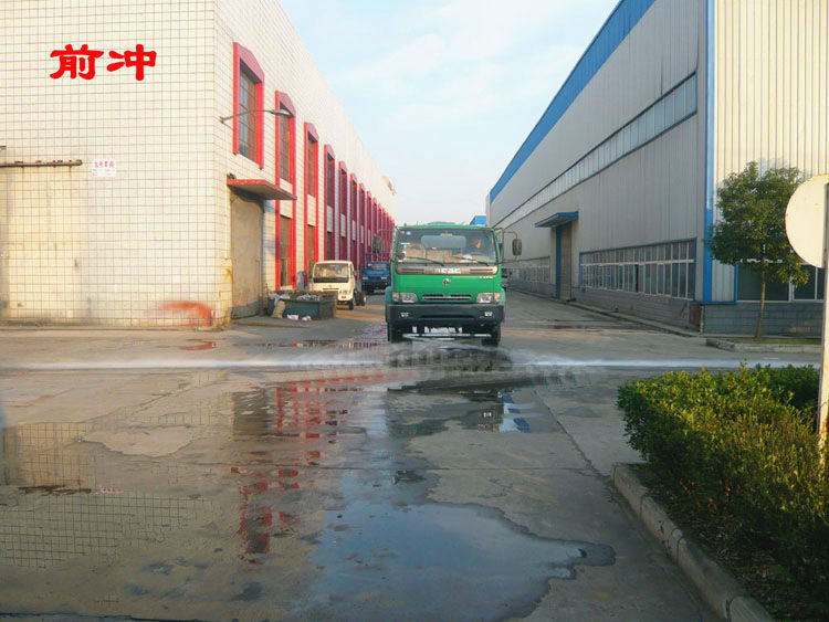 - 灑水車前沖圖片:前沖為最常用的灑水車功能之一,常用于環衛街道沖洗、壓塵、降溫等,平時我們見到的公路灑水車即是用的這一噴灑功能進行路面沖洗功能。