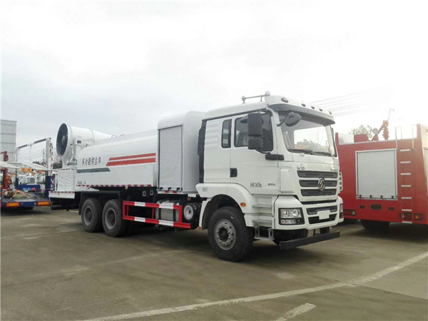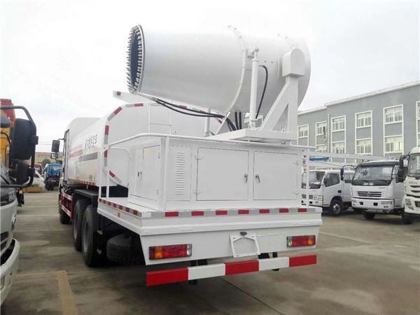 目前最受房地產歡迎的多功能抑塵車為噴霧抑塵車,該車除了常規的抑塵車的配置以外,還加裝了一套噴霧系統,噴霧系統主要由電機,電泵和噴灑總成組成,最大作業半徑為35米,可以遙控電控,噴霧系統可以旋轉,點頭工作。噴霧系統最大電機功率高達5.5千瓦,水泵點功率6千瓦,風機攜帶18個噴霧頭,噴霧頭可更換。