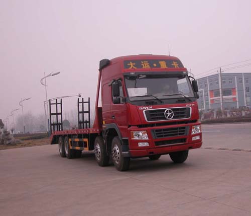 大運前四后八平板運輸車是我廠新推出的一款挖機運輸車,暫無燃油公告,對于需要辦理營運證的用戶,暫不推薦此款車型。