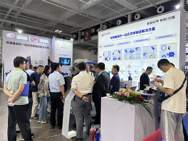 許多參展者慕名前來咨詢大口徑鋼管柔性連接技術,玫德展位人流絡繹不絕。