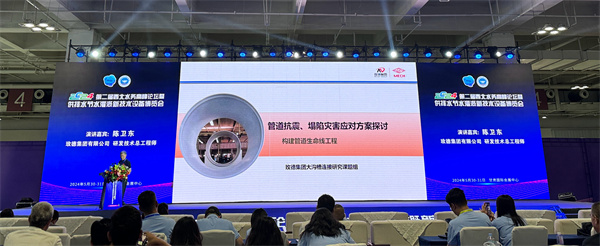 玫德集團研發技術總工程師陳衛東以《管道抗震、塌陷災害應對方案探討》為主題與現場專家、同行進行了技術交流。針對地震災害、沉降塌陷災害案例,通過多臺陣振動臺試驗、模型驗證,玫德發現解決埋地管線抗震問題,柔性連接方案是一種很好的經濟實用的解決方案。