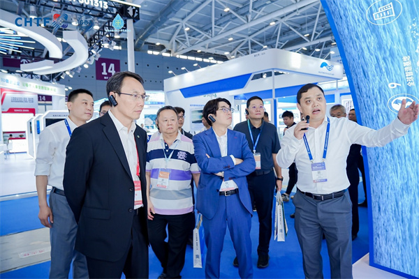 深圳環境水務集團黨委副書記、總裁龔利民蒞臨玫德集團展位,玫德集團市政BG總裁、邁科管業控股有限公司總裁周志偉接待并一一講解玫德帶來的水務領域重點產品及解決方案