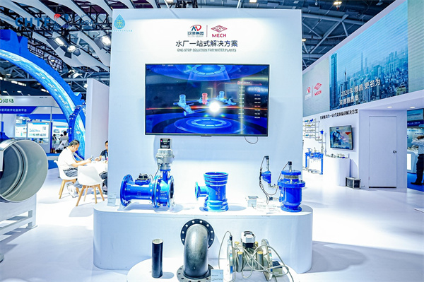 本次展會玫德不僅跟現場專家、同行分享了玫德智慧,還展出了大溝槽柔性連接系統、大口徑溝槽管卡、水廠一站式解決方案、二次供水一站式解決方案、城市管網一站式解決方案、直飲水系統、球墨鑄鐵管材管件等一站式產品及解決方案。