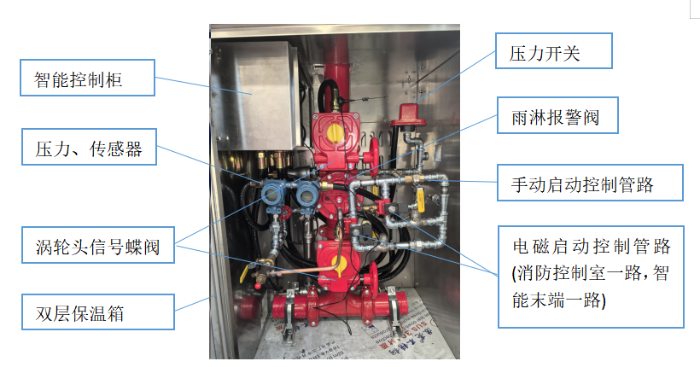 傳統(tǒng)雨淋系統(tǒng)在戶外極端環(huán)境(如嚴(yán)寒、高溫、高濕)下易出現(xiàn)管路損壞、設(shè)備失靈等問題,而智能雨淋報警撬裝系統(tǒng)的“環(huán)境適應(yīng)性+穩(wěn)定運行”設(shè)計,可突破此類場景限制。