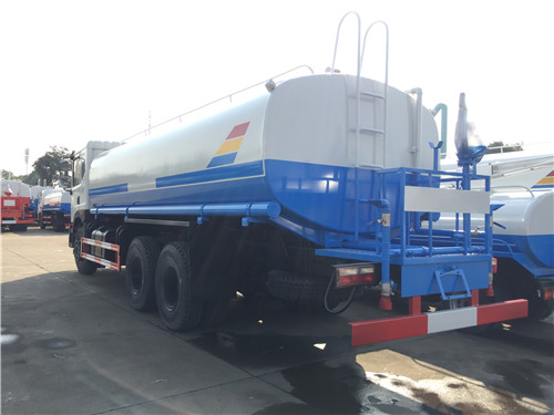 1、灑水車前沖、前噴――前沖標配的是三彎前沖噴頭,可任何調節灑水方向,常用于路面灑水,一般位于駕駛室前下方,主要噴射柱狀水流,射程14米,可將路面的垃圾及雜物沖至道路兩旁供清掃清潔,同時水遇到灰塵后結伽,防止車輛來往造成的揚塵。也可選裝前噴噴頭,即用鴨嘴噴頭替代三彎前沖,噴出的水流呈扇形,像一把水鏟一樣,可以將路面沖洗得更為干凈,但相應噴灑距離縮小,適合單邊道路的沖洗。
